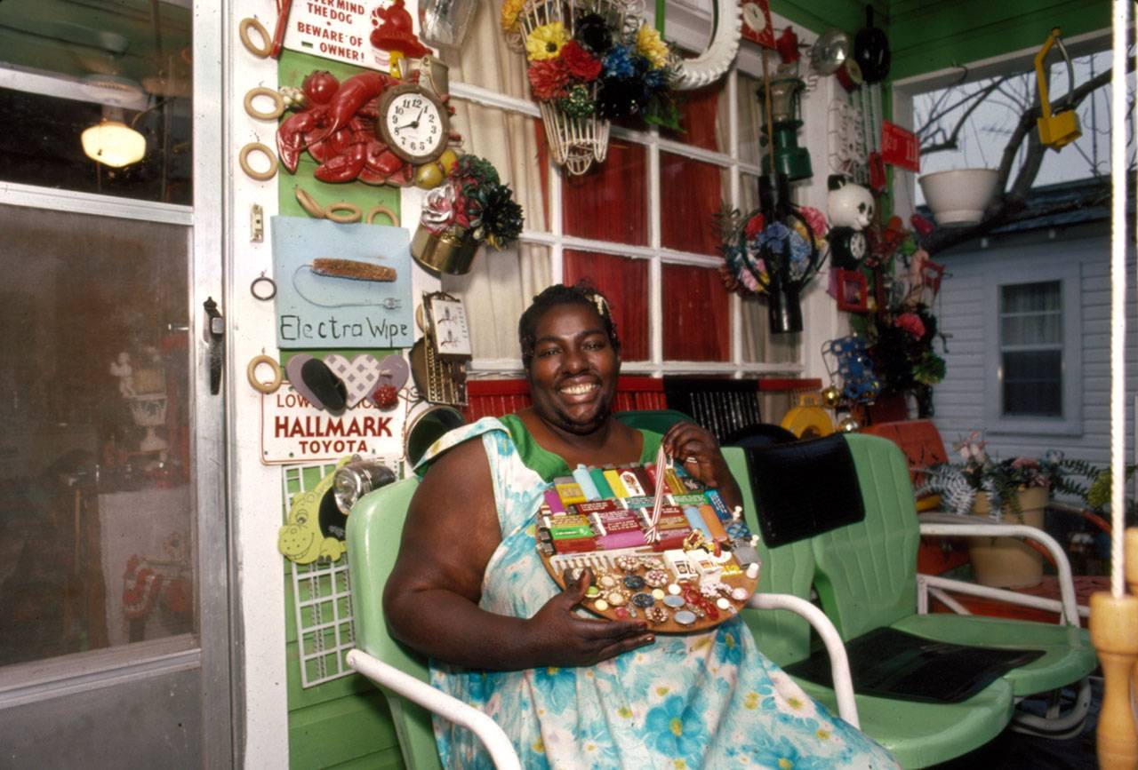 In contrast to the banana on the wall, L.V. Hull's use of mundane objects in art was intimate, spiritual, and communal. I came across this review of an exhibition of her work at the Mississippi Museum of Art. She spent over thirty years transforming her home and garden into a living, breathing art installation. She welcomed visitors and invited neighbors to stop by anytime. She had no designs on the art world, and instead made her living as a domestic worker, and created things to express joy and connection.
