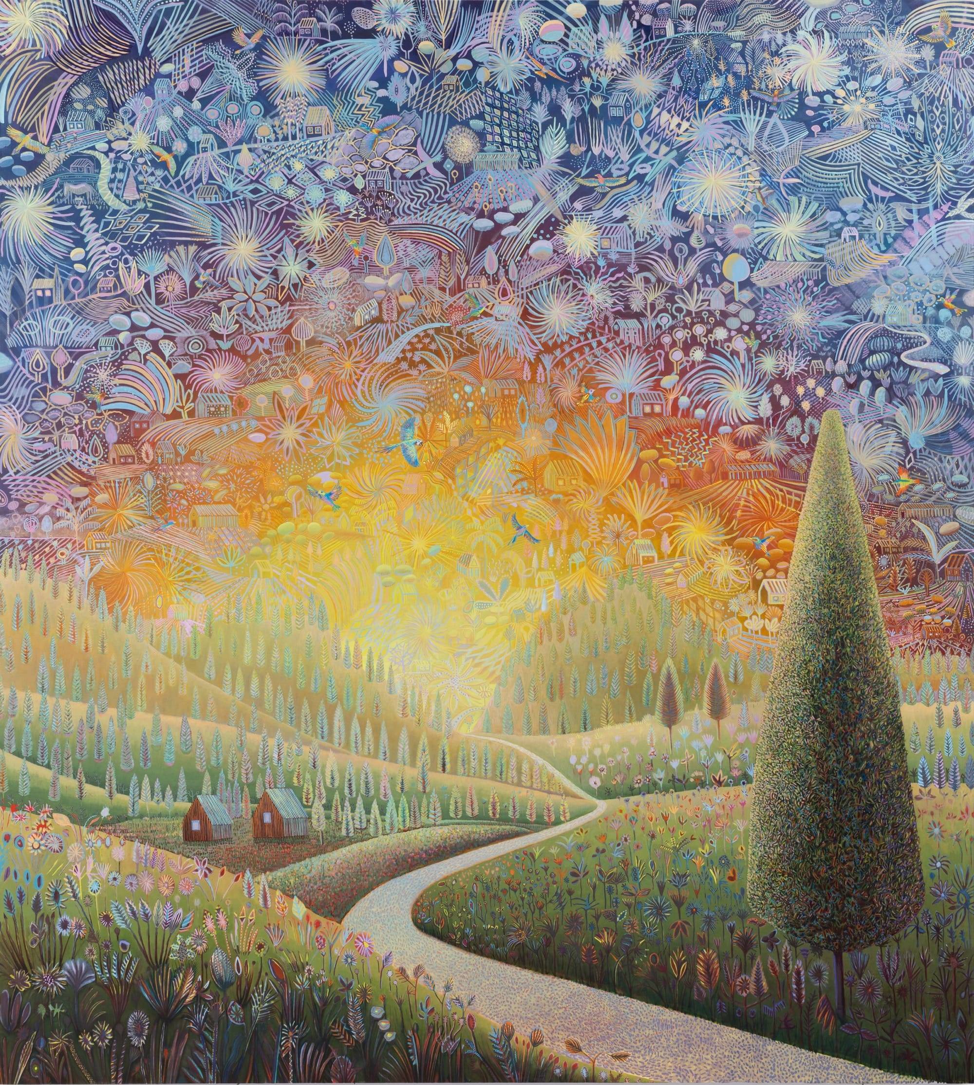 I love David Brian Smith's luminous paintings. They're packed with stuff, like the way a child would see a world that is populated with magic. I haven't seen one in person yet, but I imagine I could stare at it for hours. The endless patterns weave together to create meditative studies of a fantastic, spiritual place.