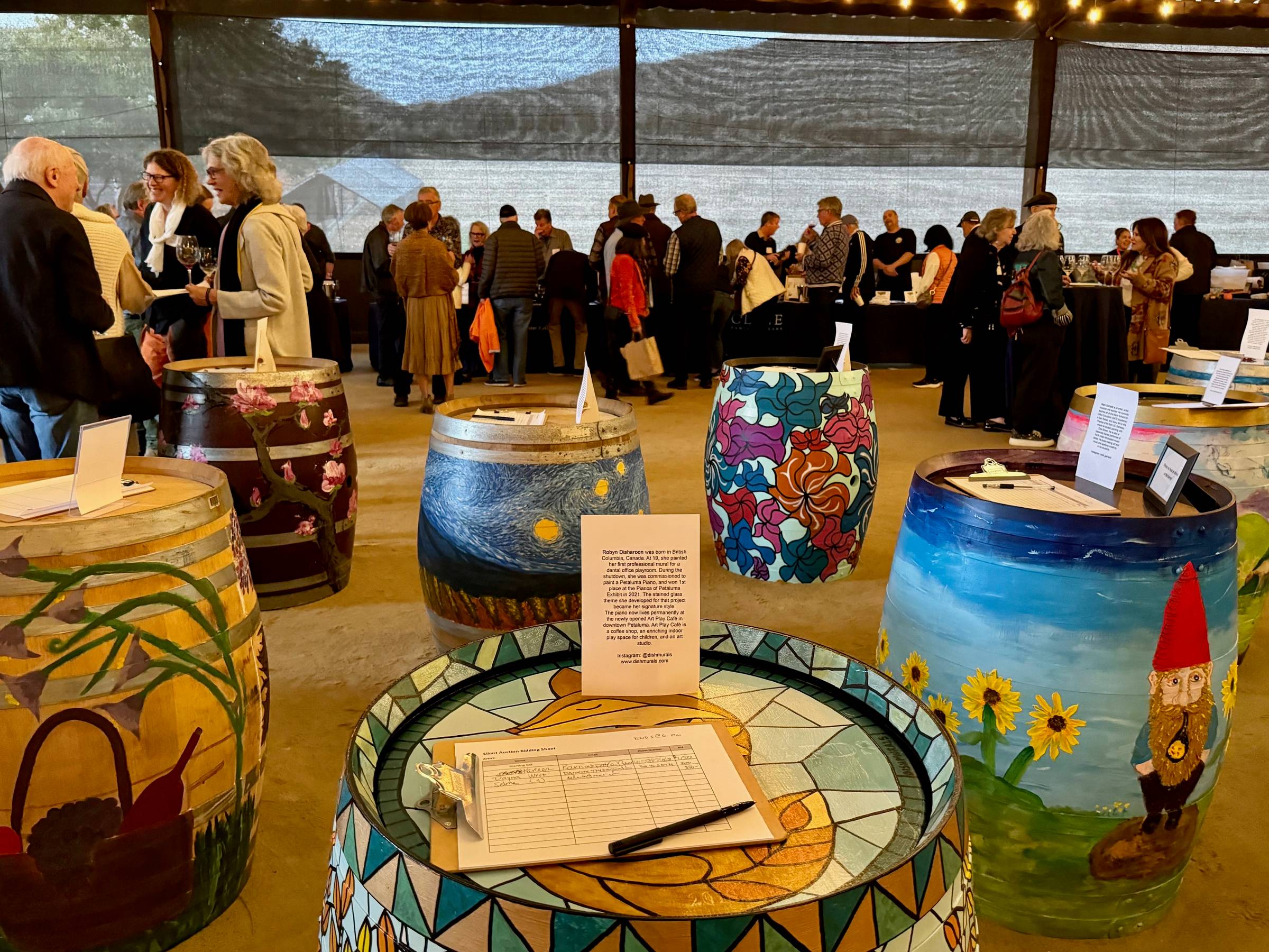 But when I let go of expectations and just tried to be helpful, I looked around and saw magic. It was no longer about me. It was about the power of creativity in the room. It was spinning a collective joy that permeated the space. The artists were having a great time. Their painted barrels were like ambassadors bringing light to new lands—where they were welcomed and appreciated. The bidders enjoyed winning their artworks. The winery people enjoyed the extra energy at their event. Money was raised for our various organizations—not as much as we’d hoped, but the fun we had made it all worthwhile.